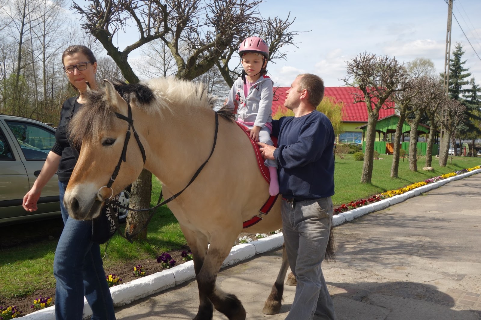 Lia bardzo polubiła też konika Leona, weterana hipoterapii, Codziennie dosiadała go pod czujnym okiem wujka Błażeja. Przejażdżka wygląda może relaksująco, dla Lii jednak utrzymać się pół godziny na koniu to naprawdę trudne zadanie. Naprzemienny chód konia stymuluje do pracy właśnie te mięśnie, które i nam są potrzebne do chodzenia: